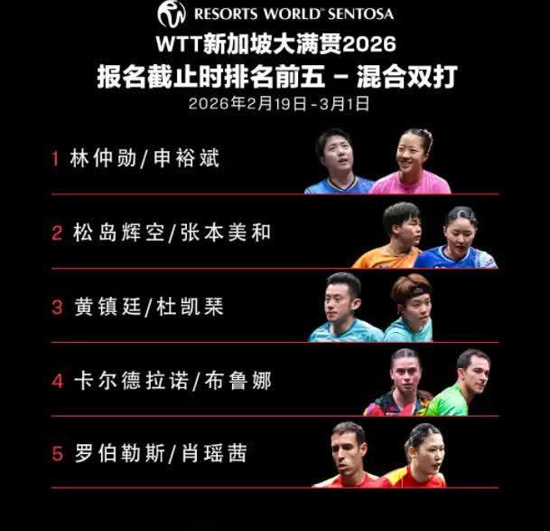WTT官方公布了参加新加坡大满贯的夹杂双打名单,让东谈主不测的是,此次公布的全国名次前5的组合,而孙颖莎和王楚钦这对固定的混双组合,却并莫得在名单中,在最新的全国名次中,莎头组合是高居全国第三,却并不在这份名单中!